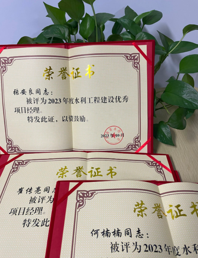 近日,河南省水利學會頒發(fā)了2023年度水利工程建設優(yōu)秀項目經(jīng)理的榮譽證書,我司多位同志榮獲此榮譽!